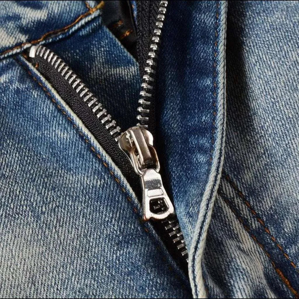 Introducing our 2023 Autumn Collection Black Patch Knees Men's Fitted Jeans, oozing with grunge vibes!