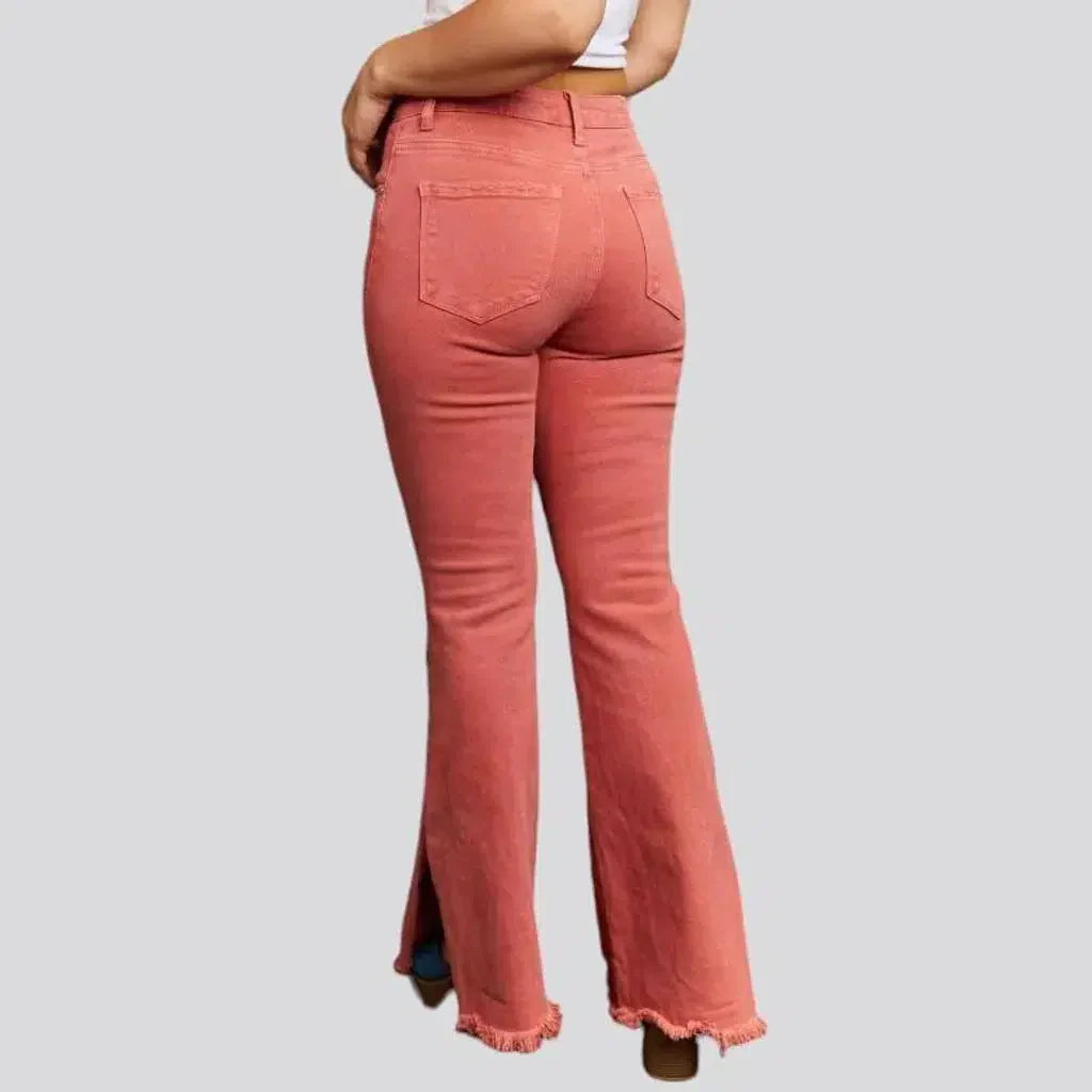 Bootcut women's slit-raw-hem jeans