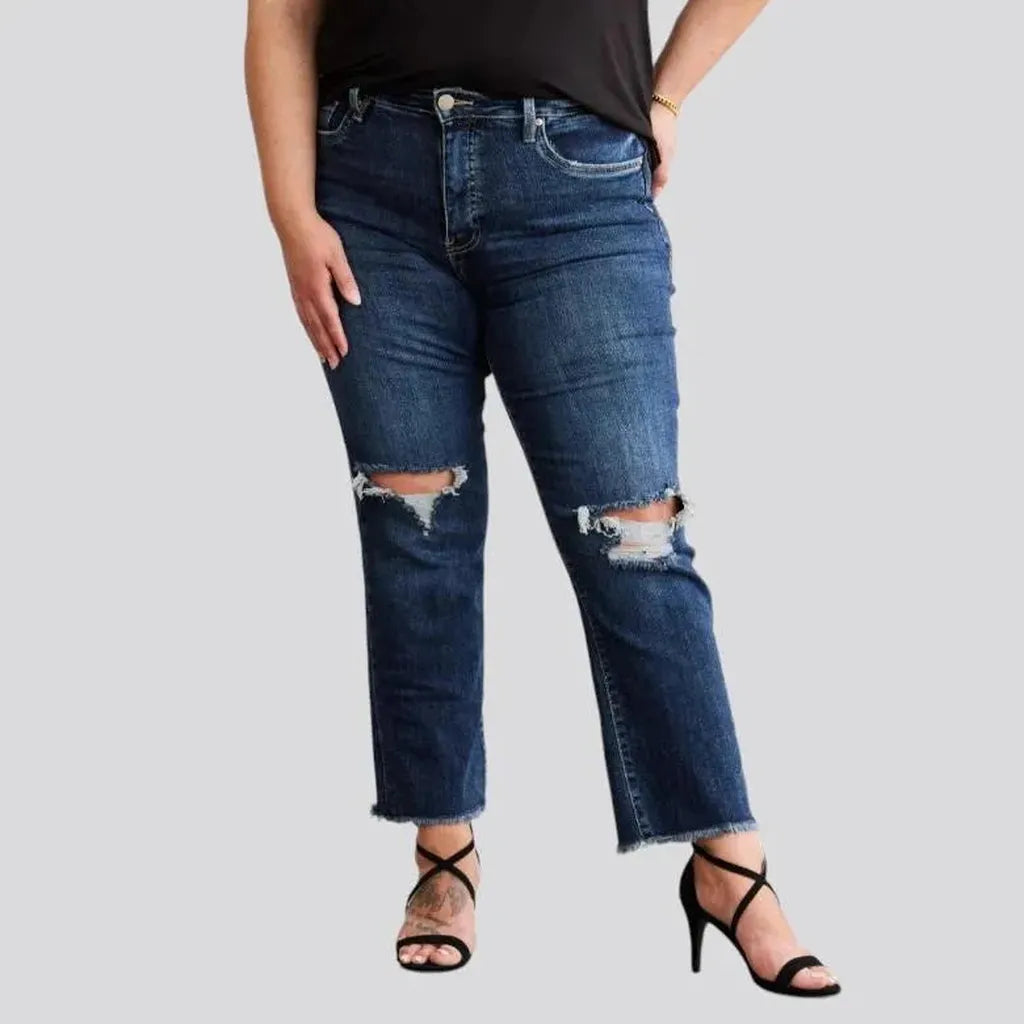 Dark-wash whiskered jeans for women