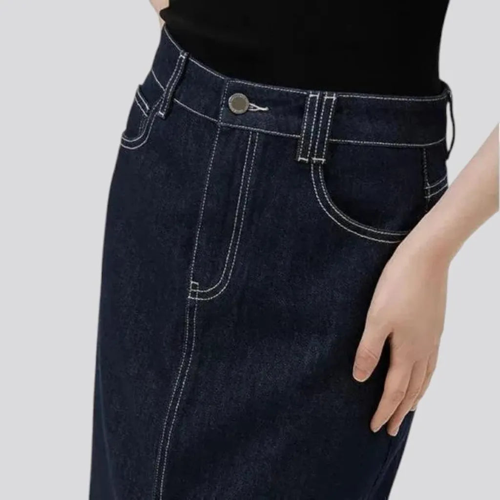 Elegant pencil dark patterned jeans skirt