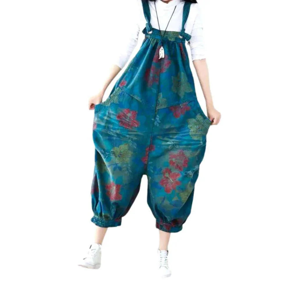 Floral baggy women's jeans overall