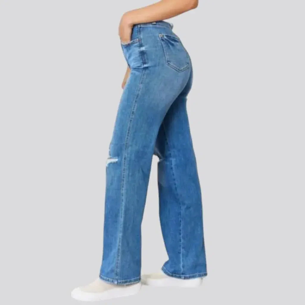 Elevate your punk game with our plus-size distressed straight jeans from the 2024 Spring Collection. These jeans are the perfect embodiment of the rebellious style, with a vintage feel and fashion twist. They are designed for the confident, vogue-forward plus-size woman who wants to make a statement.
