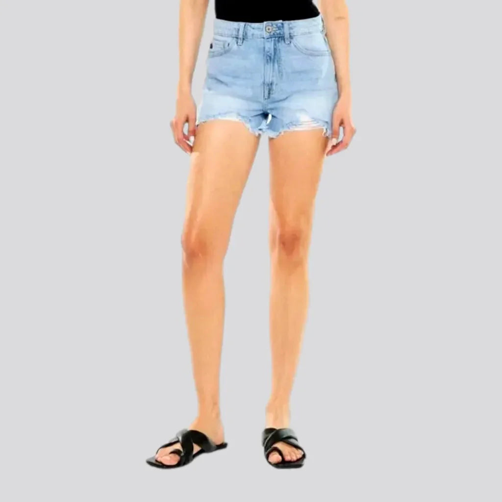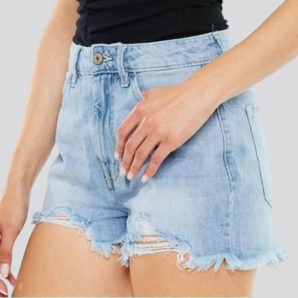 Light-wash grunge denim shorts for ladies