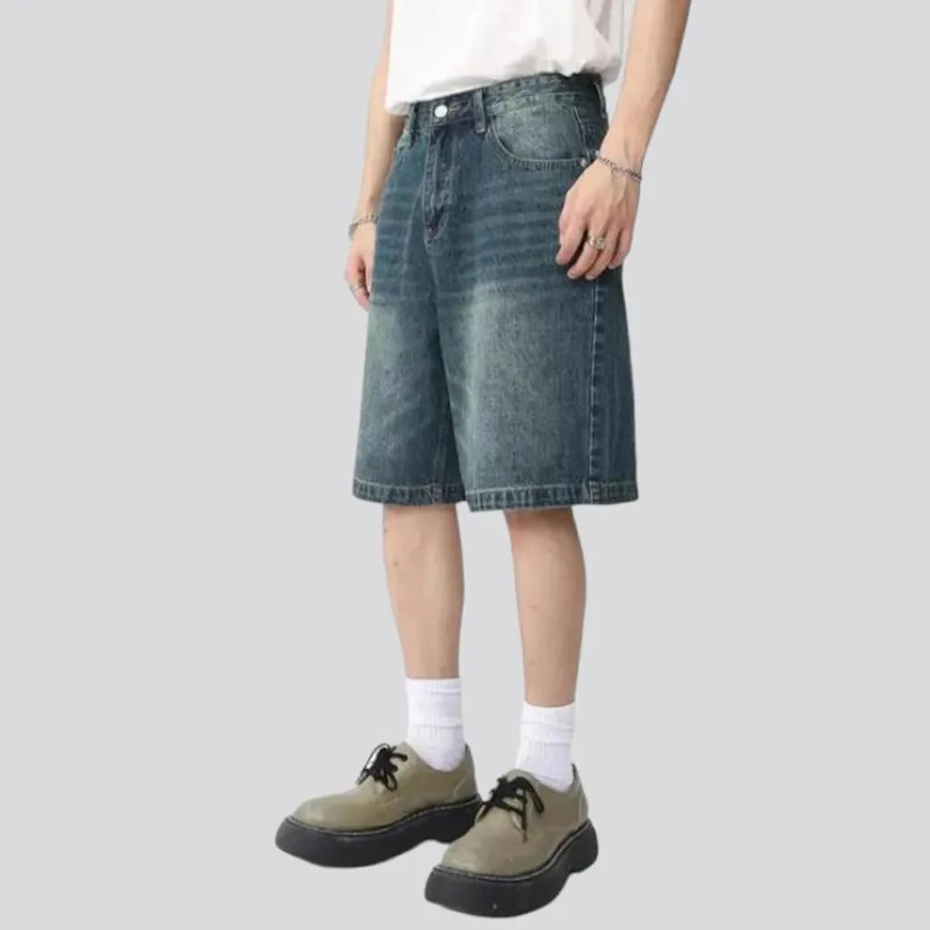 Elevate your summer trendy game with our sanded men's jeans shorts from the 2024 Summer Collection. These loose shorts feature a aged-inspired design, complete with sanded and creased accents for a lived-in look. With a knee-length fit and high-rise silhouette, these shorts offer both style and comfort in a single piece.