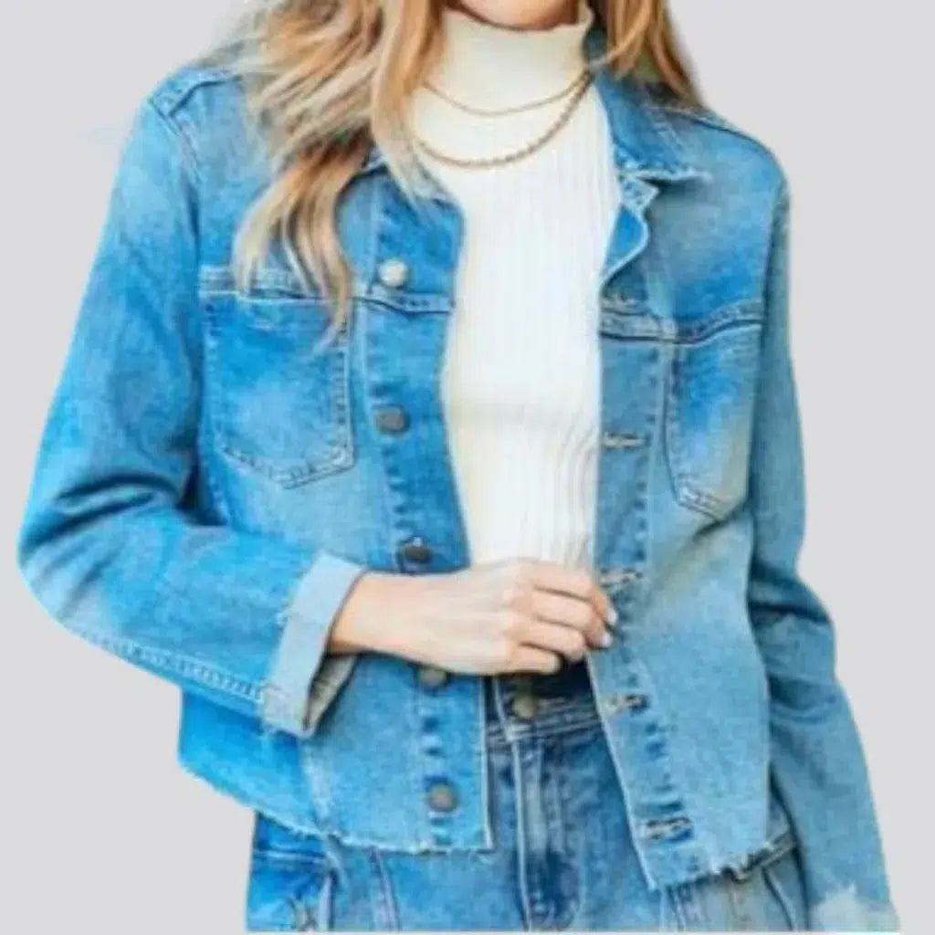 Sanded sky-blue women's jean jacket