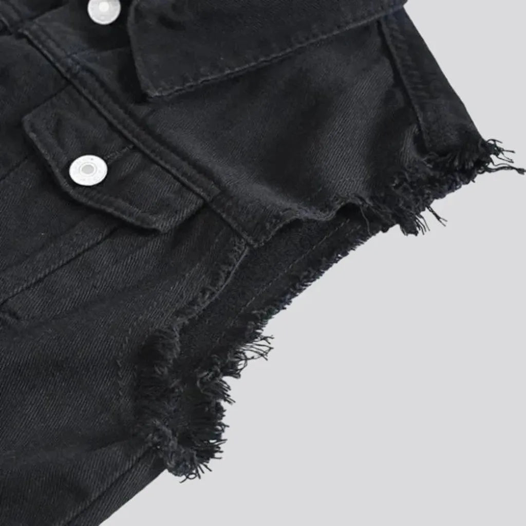 Elevate your trend game with this slender jean vest from our 2024 Summer Collection. Perfect for a day out with friends or a leisurely night out, this vest will make you stand out in the crowd. Don't miss out on this must-have piece get yours now!