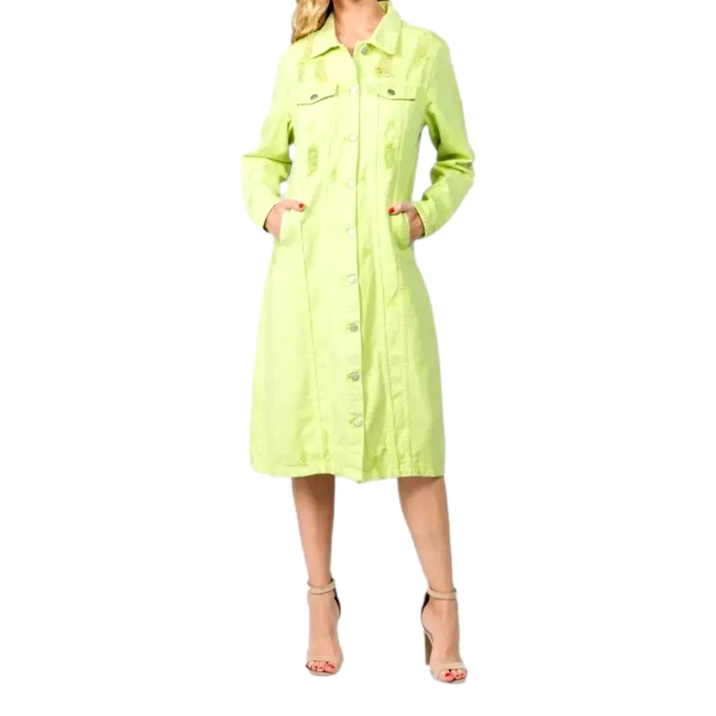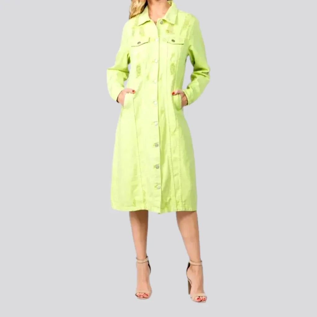 Trendy distressed maxi denim dress