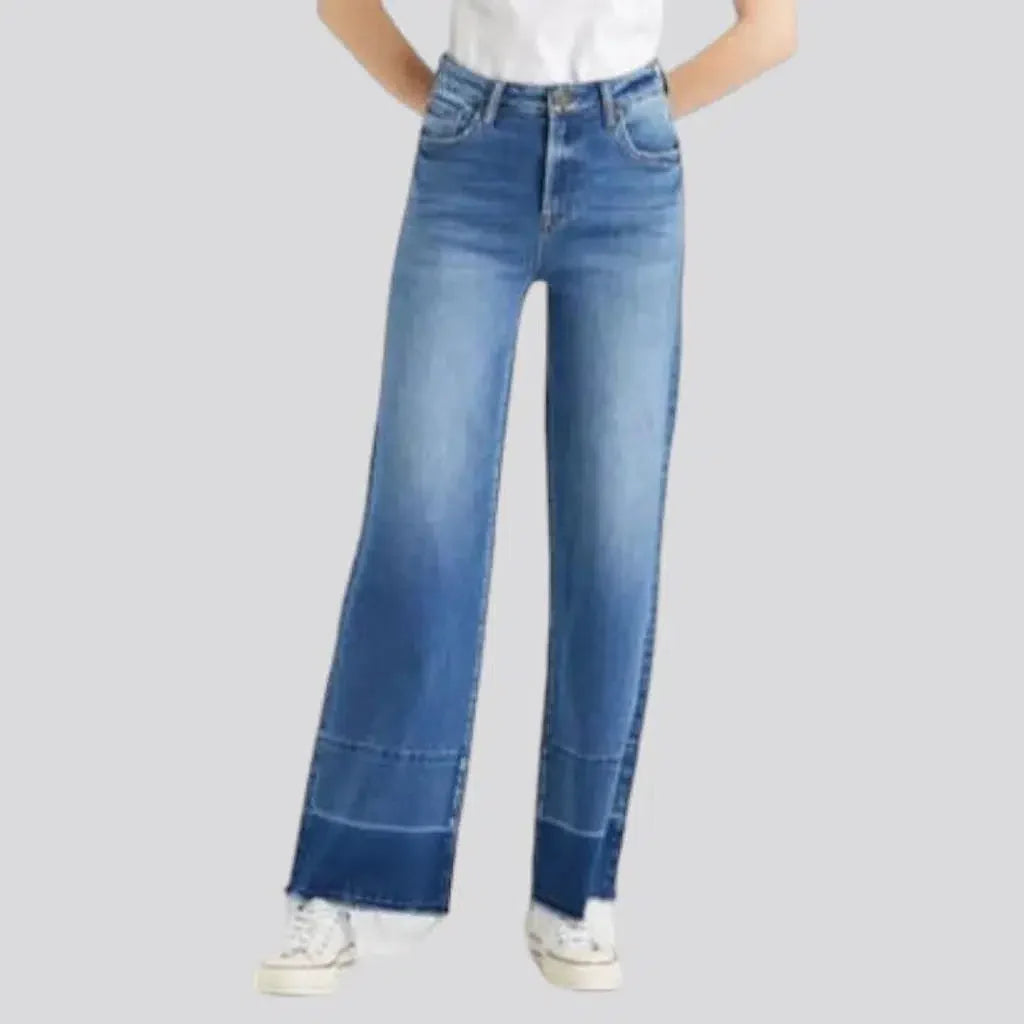 Elevate your city trend game with our highly sought-after whiskered jeans for women from the 2024 Spring Collection. Made with premium quality denim, these jeans feature a medium-wash, sanded finish for a chic and street look. The wide-leg design adds a touch of modernity, while the dark raw hem and tall-waist silhouette exude sophistication.