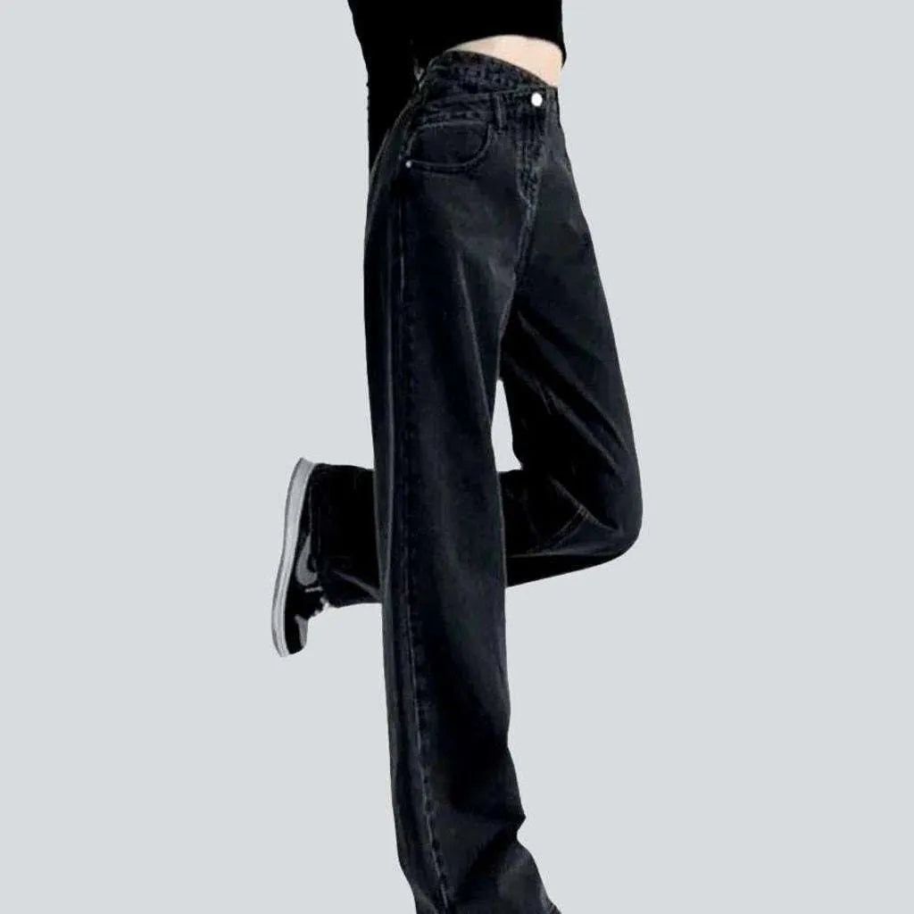 - Asymmetric Waistline: The asymmetric waist adds a unique touch to the jeans, making them stand out.